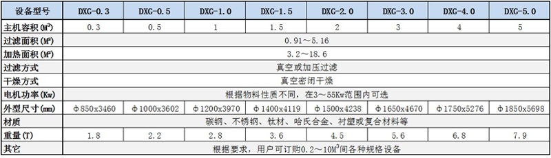 筒錐式反應(yīng)過濾干燥一體機 技術(shù)參數(shù)表